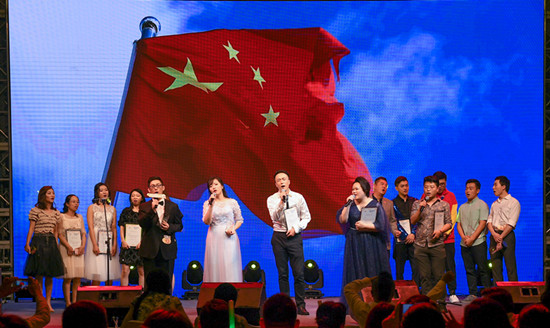 通过层层选拔,最终15名选手技高一筹进入总决赛,现场不仅有加油助威的亲友团,还有22名辖区楼宇、园区、企业代表,推动企业与社区的双向互动、双向融合。因乐相逢的15名选手怀抱赤诚初心登上社区舞台,带领现场观众共同开启一段关于音乐的旅程。比赛结束后,15名选手共同演绎《我爱你,中国》,用飞扬青春唱响爱国热情。