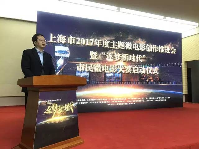 为迎接党的十九大和市第十一次党代会的胜利召开,充分发挥微电影讴歌时代风采,宣传先进典型,培育核心价值,凝聚奋进力量的积极作用,2017年3月16日,上海市2017年度主题微电影创作推进会暨“逐梦新时代”市民微电影大赛启动仪式在松江上海视觉艺术学院启动。中共上海市委宣传部副部长、市文明办主任潘敏出席并讲话。