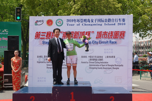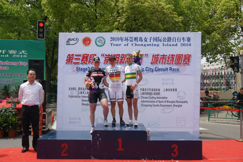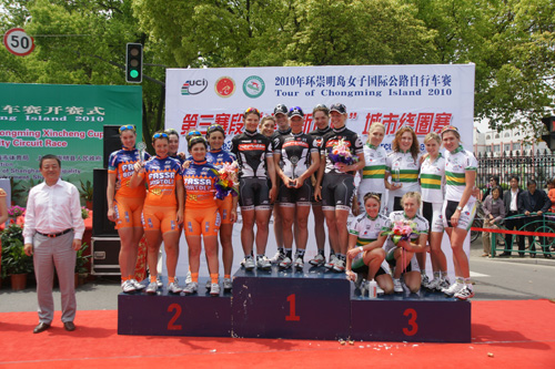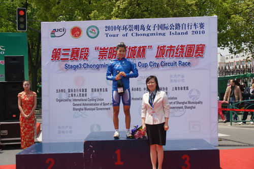 明媚的阳光下,各国参赛运动员矫健的身姿为五月的崇明平添了一抹勃勃生机。经过一小时四十分钟的争夺,德国HTC哥伦比亚女子车队14号运动员伊娜•洋子•腾博再次一举夺得个人总成绩第一名、个人总计分第一名和本赛段冠军;而作为本届赛事亚洲最高荣誉则被韩国国家队176号运动员崔惠京第三次收入囊中。
