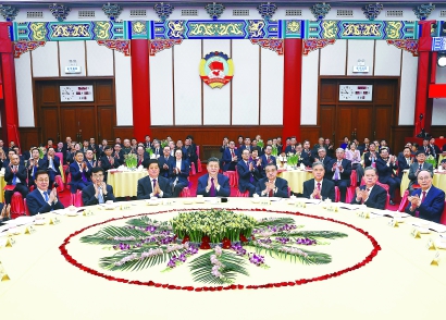 图片说明:2020年12月31日,全国政协在北京举行新年茶话会。党和国家领导人习近平、李克强、栗战书、汪洋、王沪宁、赵乐际、韩正、王岐山出席茶话会并观看演出。新华社 记者 鞠鹏 摄 中国人民政治协商会议全国委员会12月31日上午在全国政协礼堂举行新年茶话会。党和国家领导人习近平、李克强、栗战书、汪洋、王沪宁、赵乐际、韩正、王岐山等同各民主党派中央、全国工商联负责人和无党派人士代表、中央和国家机关有关方面负责人以及首都各族各界人士代表欢聚一堂,共迎2021年元旦。 中共中央总书记、国家主席、中央军委主席习近平在茶话会上发表重要讲话。他强调,即将到来的2021年,我们将隆重庆祝中国共产党成立100周年,制定和实施“十四五”规划,开启全面建设社会主义现代化国家新征程。我们要深刻铭记中国人民和中华民族为实现民族独立、人民解放和国家富强、人民幸福而奋斗的百年艰辛历程,发扬为民服务孺子牛、创新发展拓荒牛、艰苦奋斗老黄牛的精神,永远保持慎终如始、戒骄戒躁的清醒头脑,永远保持不畏艰险、锐意进取的奋斗韧劲,在全面建设社会主义现代化国家新征程上奋勇前进,以优异成绩庆祝中国共产党成立100周年。 习近平代表中共中央、国务院和中央军委,向各民主党派、工商联和无党派人士、各人民团体,向全国广大工人、农民、知识分子、干部和各界人士,向人民解放军指战员、武警官兵、公安干警和消防救援队伍指战员,向香港特别行政区同胞、澳门特别行政区同胞、台湾同胞和海外侨胞,向关心和支持中国现代化建设的各国朋友,致以节日的问候和诚挚的祝福,祝大家新年好。下转◆7版 (上接第1版)习近平指出,2020年,面对错综复杂的国际国内形势,我们统筹中华民族伟大复兴战略全局和世界百年未有之大变局,团结带领全党全军全国各族人民披荆斩棘、攻坚克难,取得了新冠肺炎疫情防控重大战略成果,战胜了严重洪涝灾害,实现了经济增长由负转正,完成了新时代脱贫攻坚目标任务、“十三五”时期目标任务,重大科技项目、重大工程建设捷报频传,全面建成小康社会取得伟大历史成果,中华民族伟大复兴向前迈出了新的一大步。 习近平强调,2020年,我们继续坚定不移推进改革开放,中央深改委部署的50个重点改革任务和其他75个改革任务基本完成,中央和国家机关有关部门完成143个改革任务,各方面出台268个改革方案。中共十八届三中全会召开7年多来,各方面共推出2485个改革方案,中共十八届三中全会提出的改革目标任务总体如期完成。 习近平指出,2020年,我们坚持“一国两制”方针,促进香港、澳门经济发展和社会稳定。我们坚持一个中国原则和“九二共识”,坚决维护台海和平稳定。我们秉持人类命运共同体理念,顶住单边主义、保护主义、霸权主义逆流,推进中国特色大国外交,推动并参与国际抗疫合作,为全球抗击新冠肺炎病魔、促进和平与发展作出了积极贡献。 习近平强调,回顾2020年,征途充满艰辛,奋斗成果显著。这是中国共产党坚强领导的结果,是中国人民和中华民族万众一心、顽强拼搏的结果,是中国精神、中国力量的充分展现。事实再次证明,中国人民是伟大的人民、英勇的人民,一定能够继续创造令人刮目相看的人间奇迹。 习近平指出,一年来,人民政协坚持中国共产党对政协工作的全面领导,坚持团结和民主两大主题,履职尽责,凝心聚力,为党和国家事业发展作出重要贡献。新的一年,人民政协要再接再厉、团结奋进,加强专门协商机构建设,把人民政协制度优势转化为国家治理效能,把各方面智慧和力量凝聚起来,形成海内外中华儿女心往一处想、劲往一处使的强大合力,不断巩固和发展大团结大联合局面。(讲话全文另发) 茶话会由中共中央政治局常委、全国政协主席汪洋主持。他指出,我们一定要认真学习贯彻习近平总书记重要讲话精神,高举中国特色社会主义伟大旗帜,同心同德、顽强拼搏,扎实做好统一战线和人民政协各项工作,团结一切可以团结的力量,调动一切可以调动的积极因素,紧扣“十四五”规划制定实施深入协商议政、开展民主监督,提高建言资政和凝聚共识水平,更好发挥人民政协专门协商机构在国家治理体系中的优势作用,以实际行动和优异成绩庆祝中国共产党成立100周年。 台盟中央主席苏辉代表各民主党派中央、全国工商联和无党派人士讲话,表示要更加紧密地团结在以习近平同志为核心的中共中央周围,立足“十四五”开局起步之年,贡献新征程同心同向之力,为夺取全面建设社会主义现代化国家新胜利、实现中华民族伟大复兴的中国梦而努力奋斗。 茶话会上,部分全国政协委员和文艺工作者表演了精彩的节目,会场内洋溢着欢乐祥和的节日气氛。 在京中共中央政治局委员、中央书记处书记,全国人大常委会、国务院部分领导同志,全国政协领导同志和曾任全国政协副主席的在京老同志出席茶话会。 |