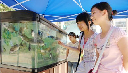 此次活动采用互动形式,在世纪广场分6个区域同时开展宣传活动,内容包括举行仪式、设立生态修复知识展区、展示放流活体苗种、免费认养海洋生物苗种、“使者”报名、苗种认购、有奖知识问答、资料及奖品分发等。