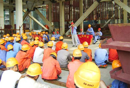 在人员最多、承担工程量最大、安全压力也是最大的锅炉安装区域,公司党委副书记、工会主席东剑敏同志、项目经理陈皓莹同志亲自进行了安全动员。会议把有限公司的安全通报进行了传达,并结合望亭工程的实际和安全生产存在的问题,进行了深入的讲解,对所有的施工人员都是一个很大的震惊。大家表示,对所有问题要逐条进行整改,并举一反三,全面、认真、彻底的安全大检查,消除施工现场存在的安全隐患。