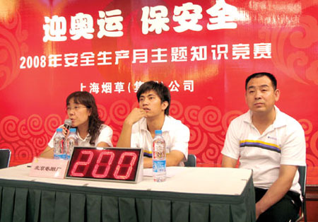 7月17日,上海烟草集团举行了“迎奥运,保安全”2008年安全生产月主题知识竞赛。经过抢答题、轮答题、必答题三轮角逐,上海卷烟厂、北京卷烟厂、机关代表队分获前三名。