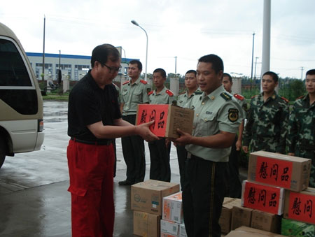 在八一建军节来临之际,西气东输苏浙沪党总支于7月31日上午带着慰问品对驻守苏浙沪管理处的武警官兵进行了亲切的慰问,向他们对保卫西气东输管道安全表示衷心的感谢。 管理处一行人员的到来,就受到了驻守官兵的热烈欢迎。管理处领导向他们致以节日的祝贺,表示驻守官兵忠于职守,尽职尽责,发扬吃苦奉献精神,为保卫西气东输管道安全平稳运行付出了艰辛劳动,贡献着青春,做出了卓越贡献。管理处给在场官兵发放了慰问品,并向他们的辛勤工作表示衷心的感谢。 随后管理处一行人员与武警进行了座谈,在座谈中,表达了公司和管理处的意见,并向各位官兵介绍了西气东输和苏浙沪的整体情况,2008年是不平凡的一年,百年奥运的梦想即将实现,保卫管道安全运行更是工作的重中之重,希望全体官兵能够“保管道平稳输气,建平安奥运”。在场的官兵表示,感谢西气东输苏浙沪管理处在节日的看望和慰问,表示一定保卫好西气东输管道万无一失,发挥人民军队优势,为西气东输平稳供气做出更多贡献。 |