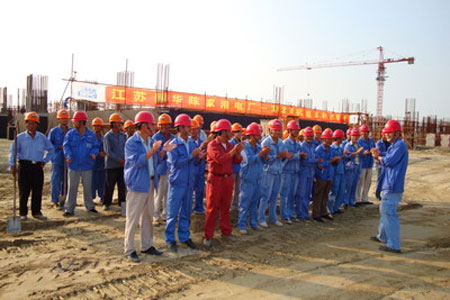 陈家港项目工程自4月20日正式开挖后,迅速组建项目管理机构,全面落实国华电力安全、质量、职业健康和环境保护各项措施,用仅半个月的时间确保生产临建钢筋加工和砼拌和系统的完善,保证了#2机组开浇第一罐混凝土的实现。近期来,项目发扬了团结拼搏、协作创新的精神,克服了苏北地区雨水多、台风季风多、施工现场淤泥多的不利因素,做好防汛防台,加强现场安全文明施工管理和质量三级验收制度,不断提高作业员工的安全意识、质量意识和抢工意识,做到防汛中不忘工期节点,抢工中不忘安全文明施工,抓进度时更加保证工艺质量,仅用了100多天的时间,完成了#2机组主厂房基础及附属设备基础混凝土11700M3,完成了钢筋绑扎1600T,如期、高效、安全、优质的完成了陈家港#2机组主厂房零米以下基础工程任务,得到了业主、监理的好评,为保证9月中旬炉架开吊奠定了基础。 |