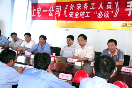 8月5日,上海电建一公司在望亭项目施工现场隆重举行《外来务工人员“安全施工必读”》的发放仪式。公司党委书记史美德,党委副书记、工会主席东剑敏等领导同志参加了发放仪式。上海电建有限公司工会主席胡建华和政治工作部主任李士根同志出席并在发放仪式上作讲话。