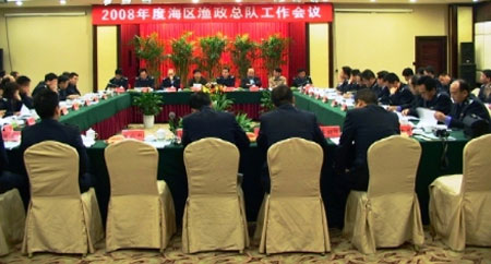 为总结交流海区渔政总队工作,推进渔政执法队伍和执法能力建设,提高海区渔政总队管理的规范化水平,11月11日,2008年度海区渔政总队工作会议在浙江省台州市召开。中国渔政黄渤海、南海、东海总队领导、部门负责人、渔政船船长、政委、轮机长等50余人参加了会议,各海区局渔政处等相关处室负责人应邀参加会议,黄渤海区局党组书记、副局长孙有恒、南海区局副局长杨朝雷、东海区局副局长张秋华出席会议并讲话,农业部渔政指挥中心指挥处崔国辉处长到会指导,台州市海洋与渔业局林文毅局长到会致欢迎辞。