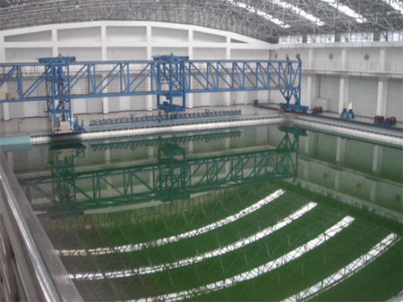 日前,由中船第九设计研究院工程有限公司负责设计的我国首个仿真海洋实验室——上海交通大学海洋深水试验池即将投入试运行。该项目是由国家发改委、上海市政府、上海交通大学、中国海洋石油总公司共同投资建造的重点工程,是国内第一座现代化、功能完善的海洋深水试验水池,在国际上排名仅次于荷兰MARIN水池。该水池的建成,标志着我国成为世界具备海洋工程深水综合试验研究能力的三个国家之一。 试验池主要由水池主体和一个深井组成。水池主体长50米、宽40米、水深10米;深井内径5米,最大工作水深45米。主要装备包括造波系统、消波系统、造风系统、水深调节系统、拖车系统和水质循环系统等,具备模拟4000米水深的深海工程试验能力,可模拟大范围飓风、三维不规则波、各种奇异波浪、典型垂向流速剖面深水流等各种复杂海洋环境,具备模拟、分析、测量船舶及海洋工程结构物在深海环境中出现的各种力学特性和工程现象的能力。