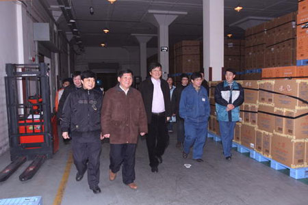 1月1日零点,上海烟草各工商企业单位协同开展的2009年卷烟全国集中配送“零点行动”在全市拉开了帷幕。(集团)公司总经理施超等领导亲临现场,向广大干部员工表达了亲切慰问,极大地鼓舞了干部员工的士气。储运公司、海烟物流、营销中心、贸易中心、经济信息中心、以及专卖监督管理处的干部员工根据集团“确保质量、确保增长、精心维护中华品牌、有效满足市场需求”的指导要求,通力协作,以“满足消费、服务市场、培育品牌”为目标,圆满完成了大规模的“零点行动”,用实际行动践行了“两个至上”的行业价值观。
