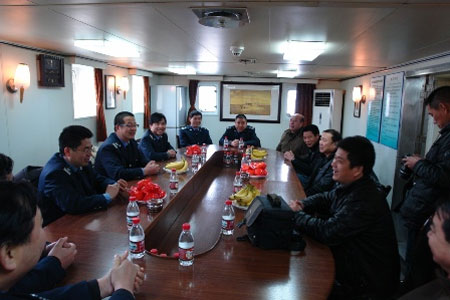 2月26日下午,浙江省台州市海洋与渔业执法支队吴军杰副支队长一行9人来中国渔政东海总队交流学习渔政执法和渔政管理工作,并参观了中国渔政202船。