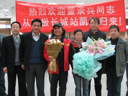 3月10日,在南极长城站执行工程建设监理任务的九院振华公司监理董承兴同志乘机凯旋。九院公司党委书记顾逖泉、工会副主席瞿建良等领导携同其家属前往机场迎接并献上鲜花。 董承兴同志于2007年12月随24次南极科学考察队赴长城站执行越冬建设任务,目前主要建设任务已基本完成,其在南极长城站一年半来的优异表现也得到了考察队和极地中心领导的好评,为中船集团和九院公司争得了荣誉。