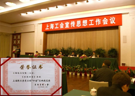 上海电建二公司工会组织开展的“劳模讲堂”活动获得了上海职工素质工程“十佳”品牌提名奖,在会上受到了表彰。活动自2007年开展以来,提高了一线职工学知识、学技术的积极性和主动性,为进一步弘扬劳模精神、开掘劳模资源、发挥劳模示范作用起到了积极的作用。