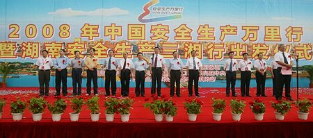 6月12日上午,2008年"安全生产万里行"出发仪式在湖南省长沙市贺龙体育场东广场举行。由中共中央宣传部、国家安全生产监督管理总局、公安部、国家广播电影电视总局、中华全国总工会、共青团中央六部委共同组织的"安全生产万里行"活动,将在湖南、贵州、云南三省开展。国家安全监管总局党组成员、副局长杨元元,湖南省委副书记梅克保,湖南省副省长陈肇雄,国家煤矿安全监察局副局长彭建勋等有关领导出席了"万里行"出发仪式。