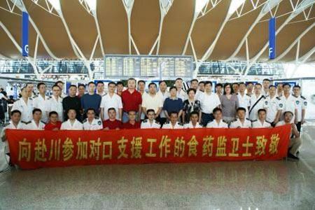 6月29日,市食药监系统参与对口支援四川都江堰灾后重建工作的一行42人,奔赴灾区。