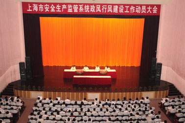 7月17日下午,上海市安监局在云峰剧场召开全市安全生产监管系统政风行风建设大会,按照市委、市府的要求,全面动员部署各项工作。上海市安监局机关、直属单位、各区县安监局机关、监察大队,乡镇、街道、园区安监干部以及部分安全生产协管员,一千多名党员干部参加了大会。