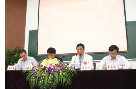 会上,方名山同志作动员,吴延风同志结合上海商学院开展实践活动动员精神和市委检查组意见,提出具体要求。会后,上海市委党校王志平教授为全体党员作《深入学习实践科学发展观》专题报告。