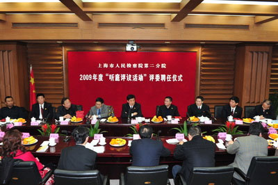 日前,冯伟国副校长应邀出席2009年度上海市人民检察院第二分院“听庭评议活动”评委聘任会议。会议期间,冯伟国副校长与陈福宽检察长就双方共建“实践教学基地”、校企(检察机关)合作事项进行洽谈并达成合作意向。