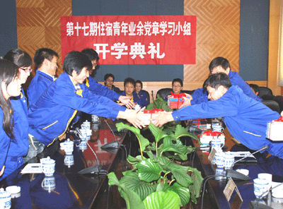 在党支部工作中,不仅需要保持现有党员的先进性,党的建设同时需要不断充实新鲜的血液,扎实做好发展党员工作。党章学习小组由有志于加入中国共产党的优秀青年组成,以党章中的具体理论作为指导思想和行为准则,主旨在于学习党章中的各项基本内容,并把这一理论运用到实际的学习和工作中。住宿青年业余党章学习小组作为新进公司大学生政治学习的一个组织,其活动的开展一直受到公司党委的关注。年轻人们积极靠拢党组织,在递交了入党申请报告后,经常向党组织汇报思想,渴望在思想上理论上有所提高。