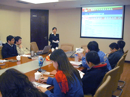 团课通读了十七大重要报告,团总支委员、青年党员朱英通过PPT形式对党的十七大召开的背景、主题、主要任务、会议概况以及亮点特色向大家作了深入简出的讲解,详细分析了十七大之后青年的机遇与责任。参加活动的预备党员薛文忠与广大青年团员踊跃发言,畅谈自己的学习心得。大家纷纷表示要把学习十七大精神与本职工作相结合,与建设和谐企业、服务和谐社会相结合,使企业更好地服务上海的社会经济发展。 |