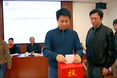 会上,团员们认真履行了自己神圣的职责,以无记名的投票方式选举王君等5位同志为第八届团总支委员会委员。王君同志代表五位当选委员表示,要为促进渔机所团事业的蓬勃开展和所的改革与发展,做出更大的贡献!