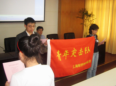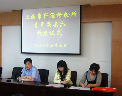 青年是未来的希望,是事业的接班人,为了发挥青年特有的优势,更好体现共青团组织生力军的作用,进一步推进纤检事业新一轮大发展,5月7日下午,上海市质监局纤维检验所团支部举行了“扬青春旗帜,展青年风采”——青年突击队成立暨授旗仪式。所青年突击队队长裘惠敏同志主持授旗仪式,所长都建国同志出席并作重要讲话,全所26名青年职工参加此次授旗活动。