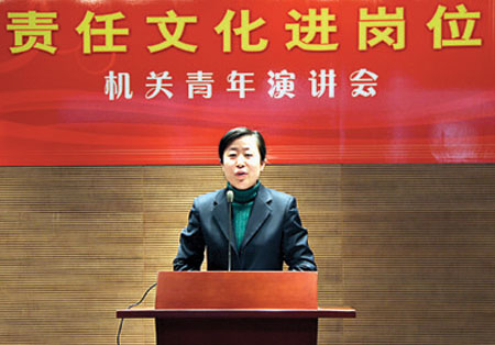 上海烟草(集团)公司机关“责任文化进岗位”青年演讲系列活动日前拉下了帷幕。在演讲会举行的三天时间里,机关四十余名青年干部先后登台亮相,用精彩的演讲展示了机关员工“岗位履责”的风采。演讲活动得到了(集团)公司人劳处、政工处、局工会和局团委等部门领导的高度关注,分别以评委和嘉宾的身份莅临现场观摩和指导。党政领导的高度重视,团员青年的热情参与,使机关“责任文化”建设得到了进一步深化。