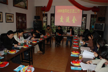 3月5日下午,应曲阳街道团工委邀请,医工院江湾分部团组织的王娟、裘鹏程代表院团委参加了曲阳街道2009年社区团建工作座谈会。区域内的岳阳医院、中科院物理所、上海外国语学院(江湾校区)等10多家单位的团组织负责人参加了会议。曲阳街道团工委书记汤泳详细介绍了2009年社区团建工作要点。与会青年围绕社区志愿者服务、文体活动、安全防范、青年就业、青年联谊等议题进行了广泛交流。