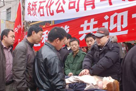 在学雷锋的日子里,高桥镇上彩旗飘扬,人头攒动,活跃着一批青年志愿者的身影。为弘扬雷锋精神,公司团委志愿者服务队推出了免费修伞、理发、自行车修理、电脑维修等6个服务项目。为了让服务内容更加贴近群众生活,更加满足群众需求。公司团委在此次为民服务活动中新增加了两个项服务内容——家庭急救知识咨询和家庭消防知识咨询,并在现场放置了模拟假人、消防知识宣传展板和灭火器,邀请专家传授相关知识和技巧。