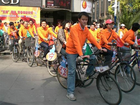 青年们穿着统一的橙色志愿者服装,每辆自行车的车头上竖着“文明先行,守序有礼”的世博宣传旗,车身上装饰着印有海宝图样的宣传文字。随着一声嘹亮的号声,30多人组成的自行车队伍出发了,沿着江宁路武定路一路骑行,宣传队伍引来了路人驻足观看。随着世博会的临近,医工院团委将积极行动起来,组织团员青年参与各类迎世博宣传服务工作,展现出医工院广大团员青年的良好形象。