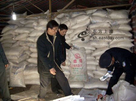 民警和上海盐务管理局的执法人员已在现场展开调查,经统计将近有50吨假冒食用盐。上海市盐务管理局盐政法制处处长郭新海表示,目前工业盐还没有卫生标准,不加碘,而且往往硫酸根离子超标,一旦混入亚硝酸盐,将导致食用者致死致伤,对市民身体健康造成严重危害。”