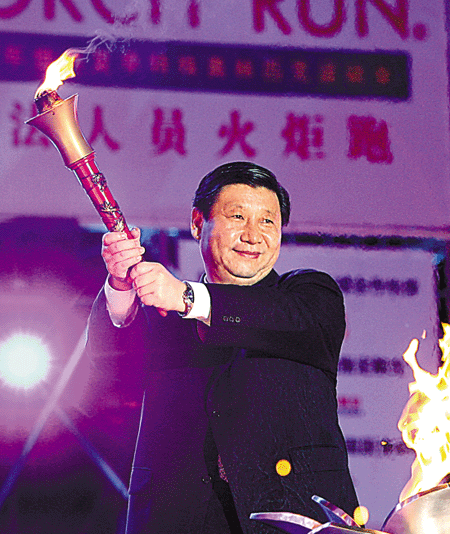 经过三个月的传递,在希腊雅典卫城点燃的特奥圣火跨越五大洲后,又从长城出发,经过北京等11个城市和香港、澳门特别行政区,汇合到上海。9月29日晚上,2007年世界夏季特殊奥运会执法人员火炬跑上海市迎圣火和起跑仪式在浦东滨江花园广场隆重举行。市委书记、组委会名誉副主席习近平接过圣火,点燃圣火坛,并宣布火炬跑开始起跑。市委副书记、市长、组委会主席韩正,国际特奥会主席蒂姆·施莱佛致辞。