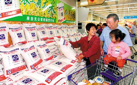 近日,带着田野清香的沪产有机新米陆续进入各大超市,引来市民选购。