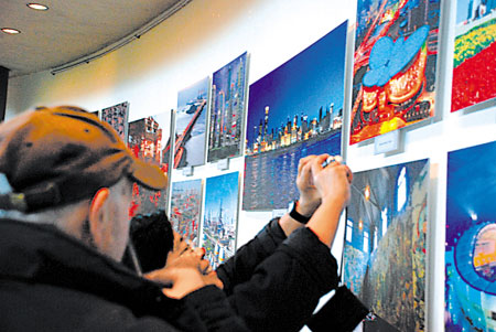 有一个看似来自东南亚的观众简直入了迷,每到一张图片前“喀嚓喀嚓”地按下照相机快门。这个名叫米亚的菲律宾人,在伦敦生活了32年,目前在一家医院干着护士工作。米亚对上海和上海世博会真有一种神往之感,她说,最近几年,她和周围的朋友对中国上海的了解与日俱增,虽然她没去过上海,但对上海人的印象很好,觉得上海人思维开放,心胸开阔,灵活应变,希望明年去上海看看,不为别的,就为“上海世博会点亮过我的那片梦想!” |