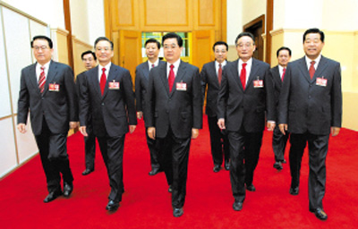 胡锦涛、温家宝、贾庆林、李长春、习近平、李克强、贺国强、周永康等和大会主席团成员在主席台就座。
