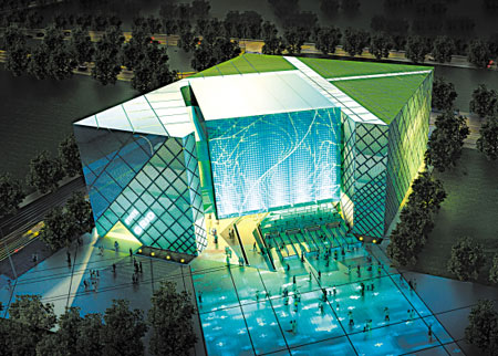 这就是将亮相上海世博会的国家电网馆。在人们眼中,“电网”不过是硬邦邦的变电站、输电线,毫无美感可言;但国家电网馆的建设方却表示,要在展馆中用“写意”的手法表现电力科技,同时又要让观众亲身体验到“智能电网”、“绿色能源”这些新科技,在世博会上发挥的作用。
