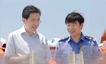 7月11日,是第四个中国航海日。当天,作为中国航海日的系列活动之一,由东海区局与洋山同盛港口建设有限公司、上海液化天然气有限责任公司在洋山港外水域共同举办了“关爱蓝色海洋,修复生态环境——2008生态修复暨使者行动”实践活动。中共上海市经济工作党委、共青团上海市委、上海市水产办、上海市渔政处、中共普陀区人大委员会、共青团普陀区委、普陀区教育局、世界自然基金会等单位的领导和代表,以及生态修复使者、部分苗种认购代表及媒体记者70余人分别乘坐东海区局所属中国渔政201、204等2艘渔政船,自洋山深水港码头启航至长江口、杭州湾渔业资源增殖保护区,开展海上苗种放流。