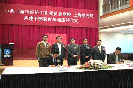 11月6日下午,上海市经济党校与上海航天局共建干部教育基地签约仪式在上海航天大厦举行。签约仪式由市经济党校朱铮宸副校长主持。市经济党校常务副校长方名山、上海航天局党委副书记张伟强等领导及市经济党校第4期中青年干部培训班全体学员出席了仪式。