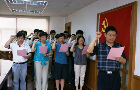 为纪念建党87周年,重温党的誓词,牢记党的使命,上海市气象局直属机关委员会组织近三年内入党的部分新党员集中进行一次入党宣誓,并在宣誓仪式后进行了座谈。