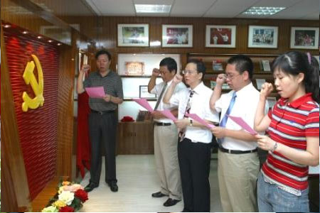 在启动仪式上,该公司一批新党员在庄严的党旗下宣誓,成为第一批进入活动室的党员。 |