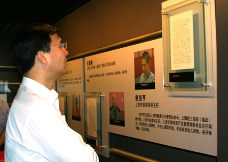 10月12日上午,上海市外经贸委组织副处级以上的干部,前往市档案馆参观了《为民务实清廉-上海市加强作风建设推进反腐倡廉档案文献图片》。展览分为四个部分,通过历史档案文献,意在教育和引导党员干部牢固树立正确的世界观、人生观、价值观和权利观、地位观、利益观,做到立党为公、执政为民。