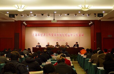 1月23日上午,市经济工作党委召开市经济工作党委系统纪检监察工作会议,系统归口六十四家单位党组(党委)分管纪检工作的领导,纪委书记、副书记,监察室(部)主任100余人参加会议。会上,市经济工作党委书记潘志纯传达中央政治局委员、上海市委书记俞正声在市纪委九届二次全会上的重要讲话精神,市经济工作党委副书记任连友传达市委常委、市纪委书记沈德咏在市纪委九届二次全会上的工作报告和重要讲话精神。市经济工作党委副书记、纪工委书记张金康主持会议并作工作报告,总结了2007年的系统纪检监察工作,部署了2008年的系统纪检监察工作。市纪委副书记李芬华和市纪委常委胡敏出席会议,李芬华并作重要讲话。