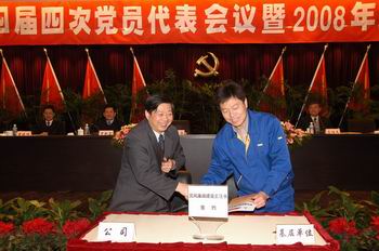 新年伊始,高桥石化公司启动了新一轮党风廉政建设责任制签约工作。在近日召开的“党员代表会议暨2008年政治工作会议”上,举行了党风廉政建设责任书签订仪式,公司党政主要领导分别与各单位党委书记和经理在责任书上签字。签订党风廉政建设责任书,是高桥石化公司贯彻落实中纪委二次全会精神一项重要举措,在明确各单位经济责任制的同时,对党风廉政建设责任制也提出新的要求,做到同部署、同检查、同考核,形成良好的运行机制。