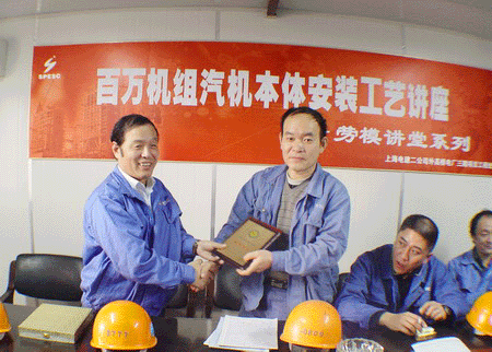 本次“劳模讲堂”是孙鸿玉工作法系列讲座的连续部分。孙鸿玉通过对百万机组和以前的机组进行的详细比较,以自己长期实践工作的经验积累,找准和把握了百万机组安装各个环节中的要点问题和难点问题,指出了安装工艺以及安装顺序的不同之处。通过孙鸿玉的悉心讲解和学习消化,班组职工对百万机组有了一个更全面、更系统的认识,大家一方面收获了不少施工经验知识,另一方面又十分直观地感受到孙鸿玉对待本职工作踏踏实实、一丝不苟的敬业精神。转动班青年工人代表刘雄在讲座上作了响应发言,他表示将积极地向孙师傅学习,学精神、学技术、学做人,努力用行动为外三#8机组实现年底扣缸贡献力量。