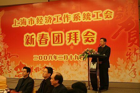 2月19日下午,上海市经济工作系统工会举办2008年新春团拜会。市经济工作党委领导潘志纯、张金康、汪仲华与来自系统各单位的工会主席、副主席、2007年离任和退休的工会主席、副主席、系统各文体协会负责人以及党委有关处室负责人共120余人欢聚一堂,迎接戊子鼠年元宵佳节。团拜会由系统工会副主任潘晓岗主持。
