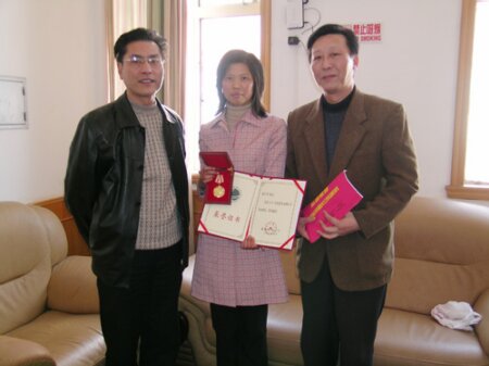 在浦东惠南镇的南汇第一中学校长接待室里,上海电建一公司热机分公司加热面班班长董学军的妻子——祝老师激动地从公司党委副书记、工会主席东剑敏的手中接过了“国网公司劳动模范”的证书和奖章。