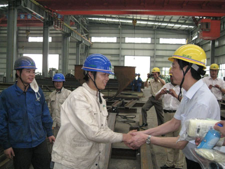 7月11日下午,市经济工作党委副书记张金康赴上海绿地建设(集团)公司钢结构工程公司视察工作,并慰问高温下坚持奋战在一线的广大职工。