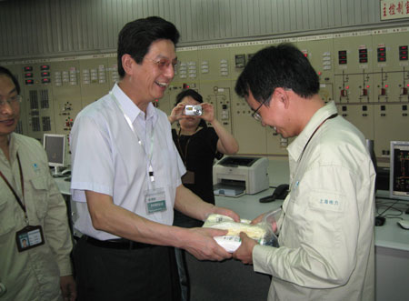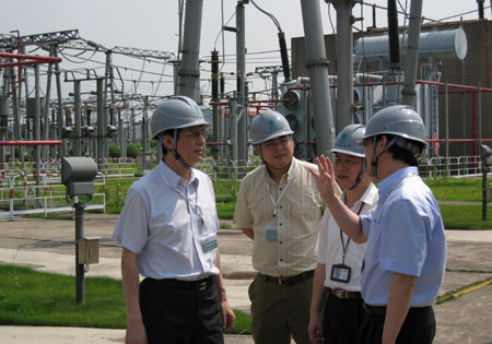 烈日炎炎下,张金康视察了500千伏杨高站现场,并听取了市电力公司总工程师滕乐天的有关情况汇报。张金康充分肯定了电力公司在“迎奥运、迎世博”和迎峰度夏期间所做的大量工作。同时希望电力公司广大职工发扬抗震救灾的伟大精神,以更加饱 满的工作热情投入到各项工作中,特别是要进一步做好迎奥运和奥运期间的服务、安全稳定工作,为上海的发展再建新功。