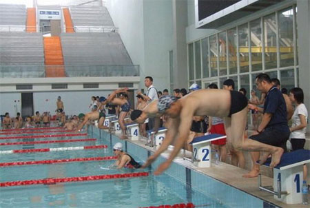 为庆祝北京奥运会的胜利召开,推动职工健身活动深入开展,8月上旬,海鹰集团公司工会举办了“ 迎奥运”职工游泳比赛。