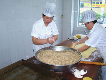 在今年中秋节来临之际,食堂的职工早已忙碌了起来,食堂点心师更是根据现代健康饮食的标准不断改进配方,一方面减少了油、糖的用量,并用植物油替代热量偏高的猪油,使月饼的味道、营养更符合职工的要求,职工们普遍反映今年的中秋月饼个大馅足美味无比。 |