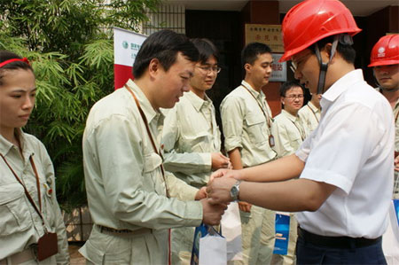 潘书记认真听取了青年站长朱惠关于长春集控站人员情况以及奥运保电工作的介绍,并到主控室和场地上进行现场慰问。他看望了正在烈日下对设备进行测温的青年运行人员,与他们亲切握手交谈并送上了慰问品。